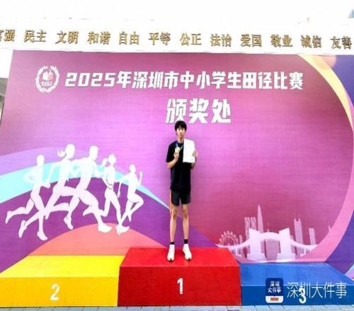 南都记者获悉,近日, 深圳市中小学生田径比赛在深圳市第七高级中学激烈上演。在初中男子400米决赛中,坪山实验学校石文建同学以50.76秒优异成绩勇夺桂冠,这一成绩是赛事近三年来的最佳表现,再次刷新坪山学子在该项目上的历史纪录!