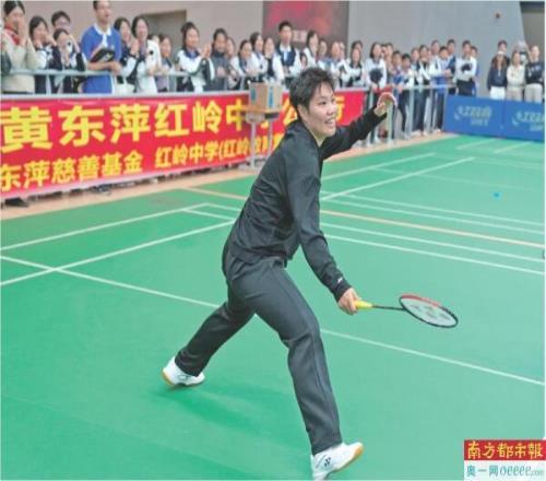 活动中,黄东萍与师生们近距离切磋“球艺”。她在与师生们“过招”后由衷赞叹:“红岭中学羽毛球的水平真的非常高。”