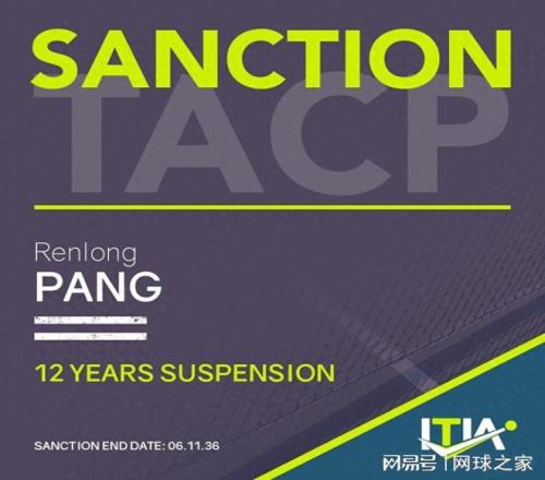 国际网球诚信机构(ITIA)20日对外宣布,“决定对中国球员逄仁龙处以12年禁赛和11万美元罚款。”