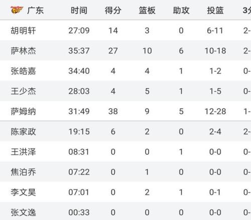 其实上场31分输北京,就能发现,广东男篮本土球员实力有限,在徐杰受伤后,球队找不到合格的组织后卫,全队出了萨姆纳和萨林杰外,无一人得分上双。这场比赛打北控也是,全队上场10人,除了2大外援和胡明轩外,无一人得分上双,得分最高的是陈家政的6分。