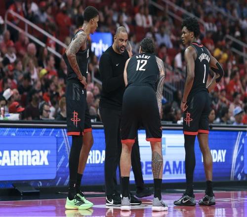火箭队之前的战术非常简单粗暴,那就是一旦外线投篮不进,亚当斯、申京、小史密斯等球员会疯狂冲抢前场篮板,因为火箭队的前场篮板能力联盟第一。而老将亚当斯更是联盟前场篮板王,他在不多的出场时间里就能抢到大量前场篮板,火箭队也因此受益。这也是火箭队为什么命中率不高但得分效率却很高的原因——他们拥有大量的二次进攻机会,所以能够拿到西部第四的战绩。