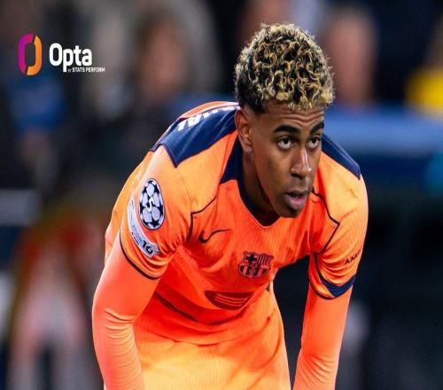 亚马尔19岁前欧冠直接参与13球,与姆巴佩并列最多